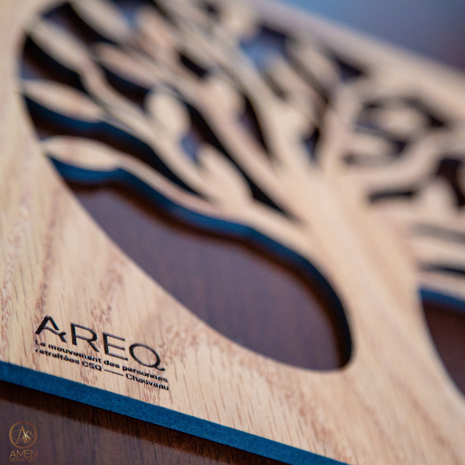 Conçu avec soin dans notre atelier à Québec, ce panneau décoratif allie élégance naturelle et profondeur symbolique.