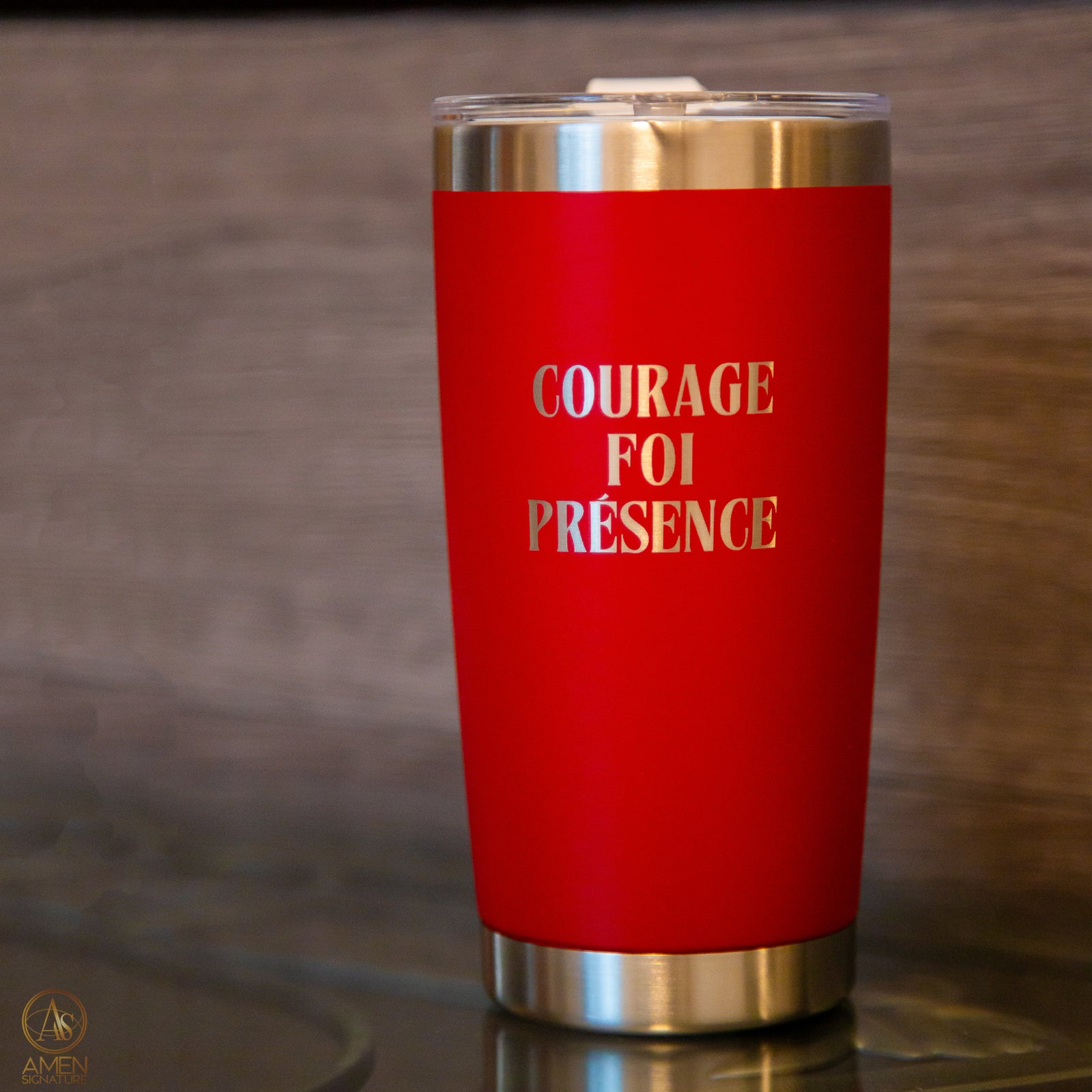 Faites rugir votre foi avec cette tasse isotherme chrétienne de 20 oz, avec le choix de tasse noire ou rouge, qui combine puissance, élégance et espérance. Gravée d’un côté avec le verset Josué 1,9 et de l’autre, gravé avec les mots : Courage - Foi - Présence. Cette tasse proclame une promesse forte pour chaque jour. (Si vous choisissez l'option de faire graver votre message personnel, les mots Courage - Foi - Présence seront remplacé par votre message personnalisé).